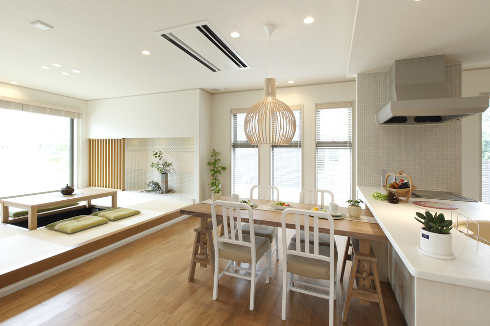 外壁タイル貼りをはじめ、内観には奥様に人気の家事ラク動線や適材適所の収納、子育てに優しい間取りを採用。さらにナチュラルやオーガニックをテーマにしたインテリアコーディネートも見どころです。